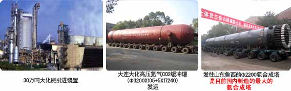 單元設(shè)備主要有: (DN600~2200,PN32Mpa)氨合成塔、氨分離器、氨蒸發(fā)器、油分離器、冷交換器、熱交換器、立式氨冷器、臥式氨冷器、軟水加熱器、淋灑式水冷器、套管式水冷器、臥式水冷卻器、廢熱回收器、水解塔、脫硫塔、精餾塔、洗滌塔、變換爐、再生塔、銅洗塔,30萬(wàn)噸/年合成氨第一和第二廢熱鍋爐、高壓輔助鍋爐A、B、C、D管組、合成氣冷凝冷卻分離器、中壓氣提塔、開(kāi)工加熱爐等。