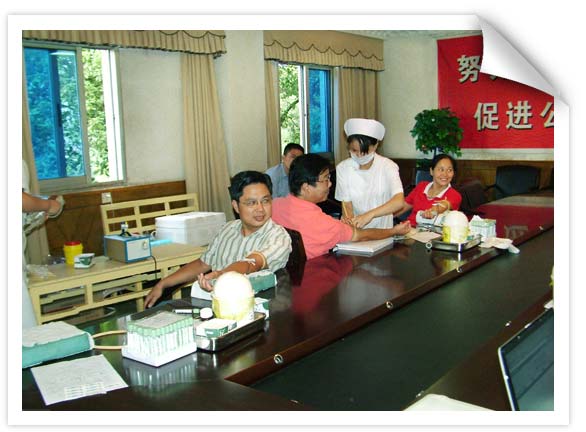 中秋節(jié)到了,湘東化機(jī)開展今年第二次無償獻(xiàn)血活動(dòng),以濃濃的愛心向社會(huì)獻(xiàn)上了一份特殊的禮物。9月11日,來自全公司各單位的近70名員工踴躍參加這次無償獻(xiàn)血活動(dòng),有許多員工是多次參加無償獻(xiàn)血的員工,他們和采血站的護(hù)士們一見如故,親切地攀談著,望著這些充滿朝氣、樂于奉獻(xiàn)的員工們,采血站的護(hù)士們由衷的感動(dòng),她們說,一個(gè)真正健康向上的企業(yè),才會(huì)年年重視并支持這種社會(huì)公益活動(dòng),特別是中秋佳節(jié)集體組織獻(xiàn)愛心活動(dòng),真是人圓月圓心更圓哪!截止到今天,公司已連續(xù)八年開展無償獻(xiàn)血活動(dòng),并多次獲得“株洲市無償獻(xiàn)血先進(jìn)單位”的榮譽(yù)稱號(hào)。