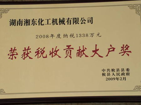 2008年湖南湘東化工機(jī)械有限公司實現(xiàn)產(chǎn)值3.5億元,上繳稅收1338萬元,全年投入技改1300萬元,防焊接變形的內(nèi)撐圓工裝等3項獲得國家專利,兩類產(chǎn)品注冊商標(biāo)被評為湖南省著名商標(biāo)。(尹雄劍)