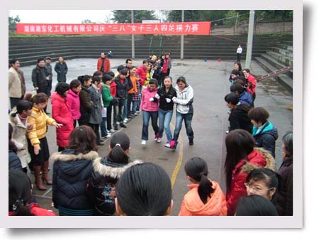 3月7日上午,為慶!叭恕眹H勞動?jì)D女節(jié)99周年,公司女工委員會在燈光球場舉行了女子三人四足接力賽。公司9個分會都派出了參賽隊(duì)伍,按照預(yù)先確定好的規(guī)則,每個隊(duì)派出6名隊(duì)員,來回接力六次,以完成賽程時(shí)間長短來確定名次。經(jīng)過激烈的角逐,最后金工分會獲第一名,機(jī)關(guān)分會、容器分會獲第二名,汽輪機(jī)分會、后勤分會獲第三名。(尹雄劍)