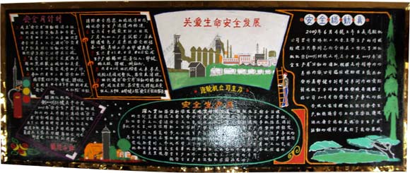 6月16日,按照公司“安全生產(chǎn)月”活動的總體安排,機動安環(huán)處組織公司各主要生產(chǎn)單位開展了一次以“關愛生命,安全發(fā)展”為主題的黑板報競賽。在此次活動中,各單位積極行動、精心準備,廣大員工踴躍參與、為本單位的安全黑板報獻計獻策。經(jīng)過機動安環(huán)處和各單位安環(huán)員的共同評定,此次競賽的獲獎單位如下: