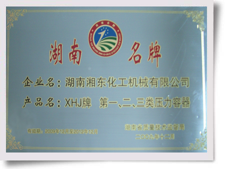 2009年12月,湖南湘東化工機械有限公司的產(chǎn)品名“XHJ牌,第一、二、三類壓力容器”被湖南省質(zhì)量技術(shù)監(jiān)督局授予“湖南名牌”稱號。(王慧卉)