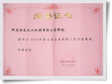 近日,自株洲市科學(xué)技術(shù)協(xié)會(huì)傳來消息,湖南湘東化工機(jī)械有限公司科協(xié)被評(píng)為2010年度全市企業(yè)科協(xié)工作先進(jìn)集體。(王慧卉)