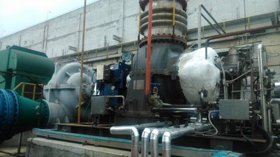 我公司于2013年8月承攬了赤天化集團(tuán)貴州金赤化工有限責(zé)任公司型號(hào)為N2.25-0.5/0.012的驅(qū)動(dòng)循環(huán)水泵用汽輪機(jī)一臺(tái)/套的改造項(xiàng)目。該項(xiàng)目是貴州金赤化工的節(jié)能改造項(xiàng)目,計(jì)劃利用甲醇工段富產(chǎn)的40噸左右的壓力為0.5Mpa(g)的飽和蒸汽用冷凝式汽輪機(jī)替換原有循環(huán)水廠6臺(tái)單臺(tái)功率為2250KW電機(jī)驅(qū)動(dòng)的循環(huán)水泵的其中兩臺(tái)。